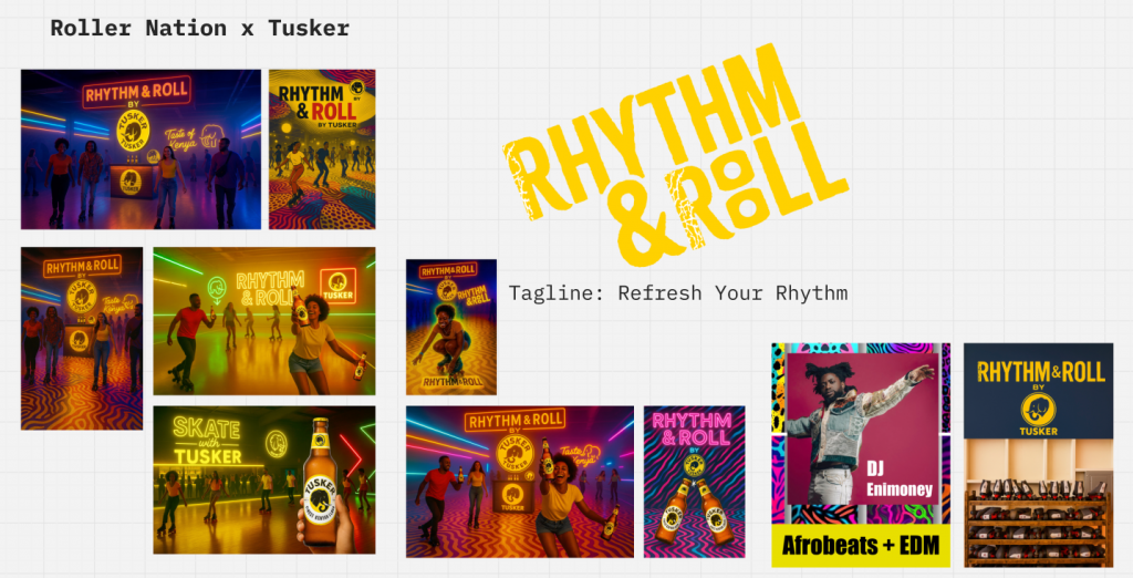 - Teaser clips featuring roller skaters, Afrobeats soundtracks, and Tusker bottles under neon lights.